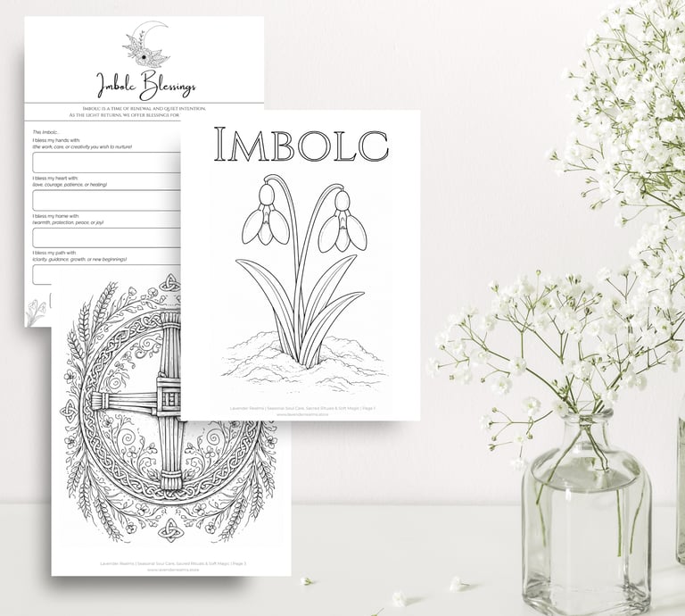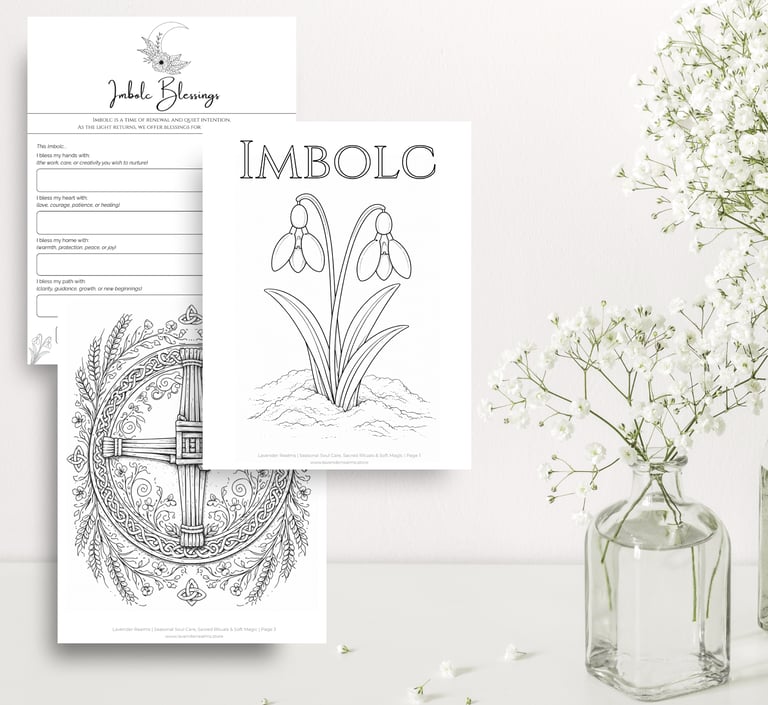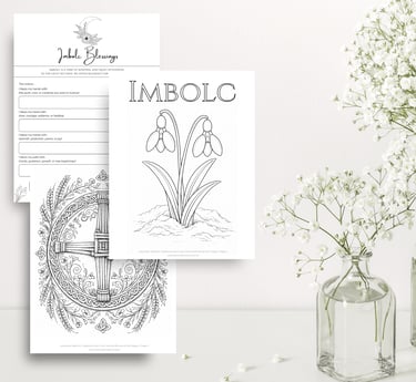 Includes three gentle coloring pages and two Imbolc ritual sheets to help you reflect, set intentions, and honor the returning light.