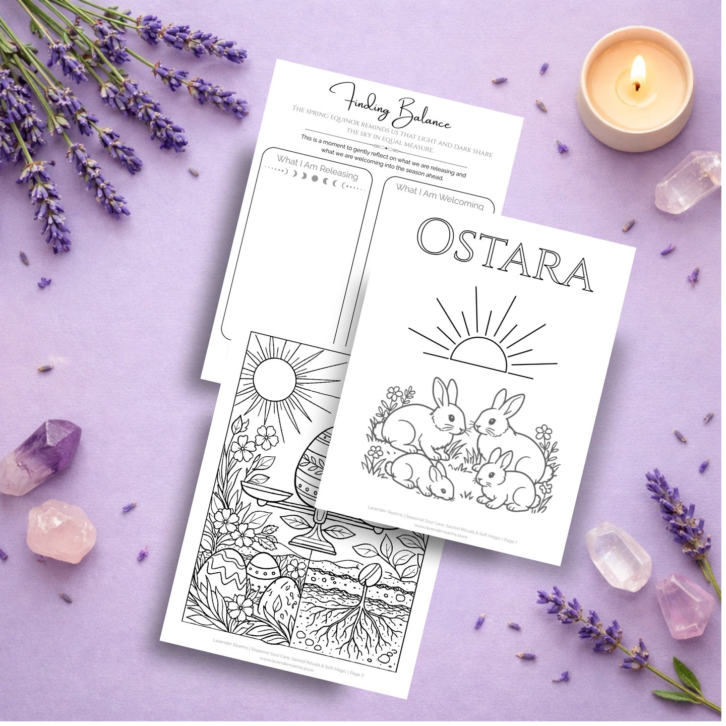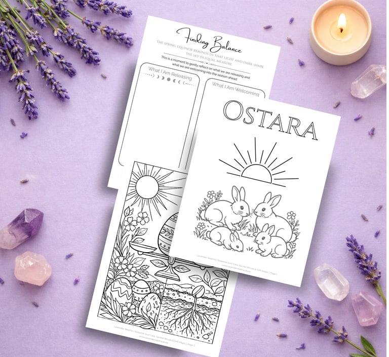 Includes three gentle coloring pages and two Ostara ritual sheets to help you reflect, set intentions, and honor the balance of the equinox.