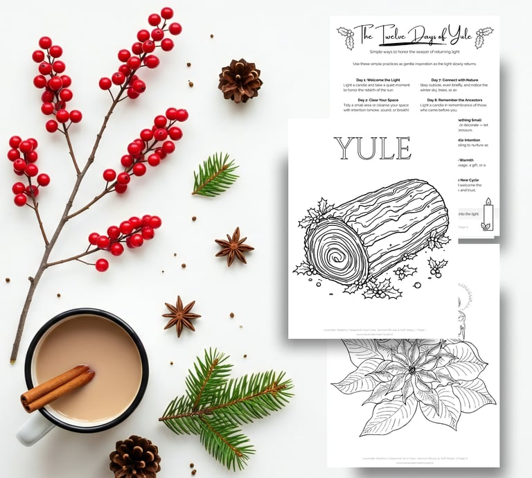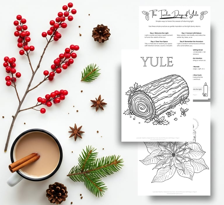 This free 4-page Yule printable invites you to rest, reflect, and rekindle your inner light as the Wheel turns toward winter. Cozy up with intention and celebrate the return of the sun.